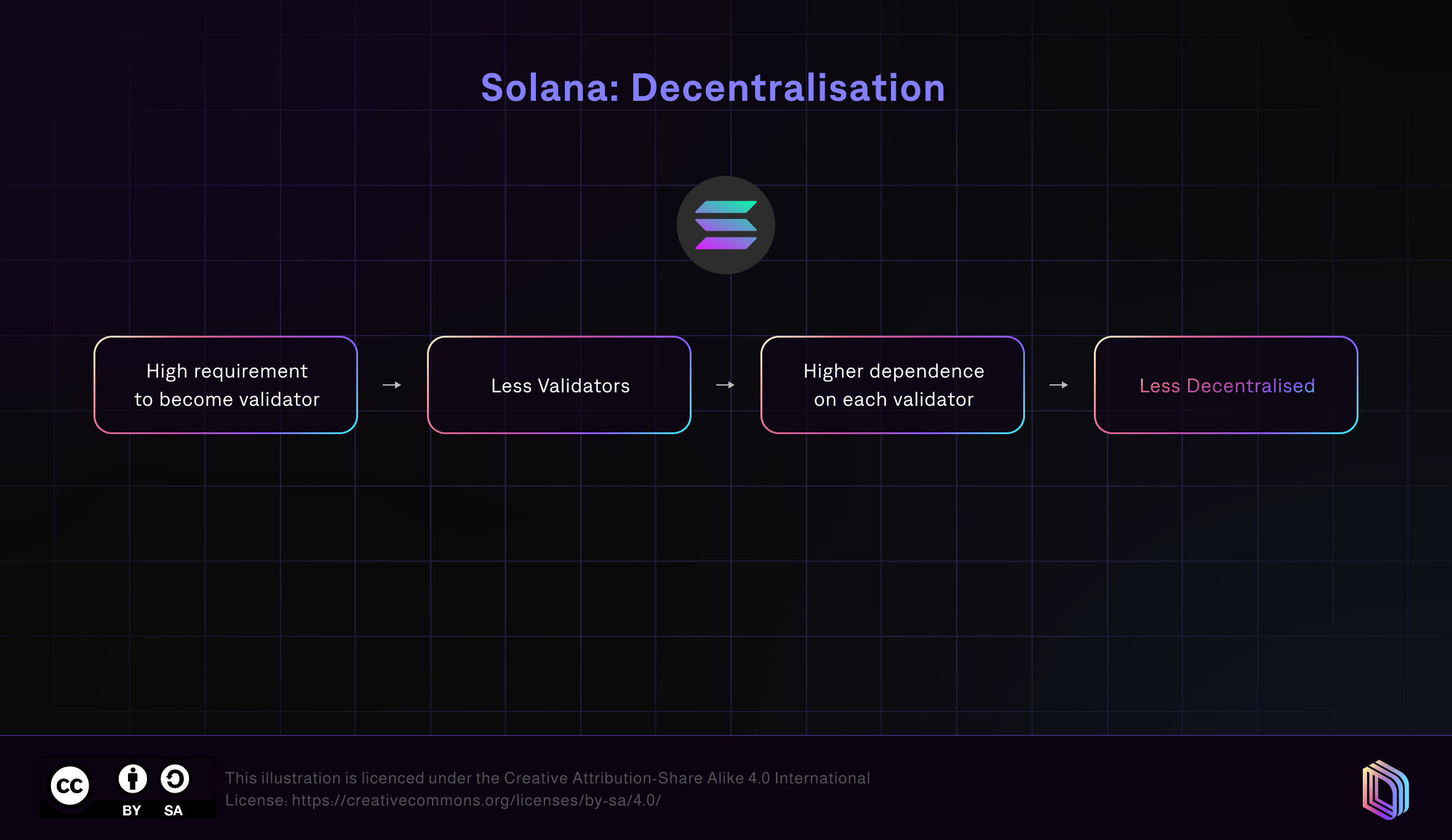 With respect to the scalability trilemma, Solana prioritises security and scalability over decentralisation.