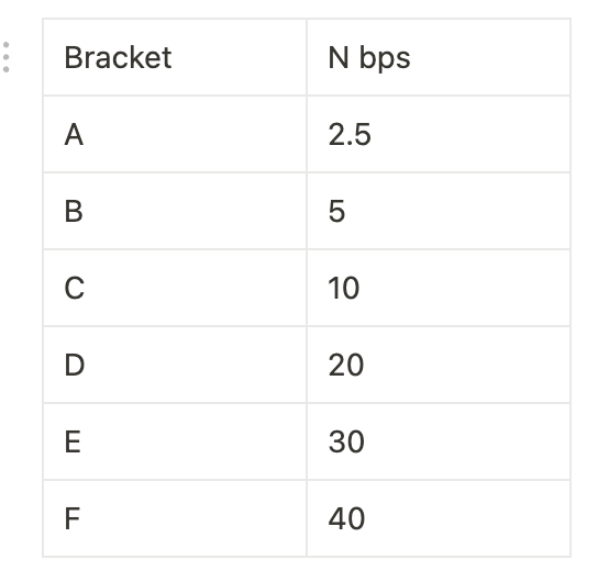 The bracket groups are defined as N bps from either the best best/offer in the market or the higher bracket. N is defined in the table below:
