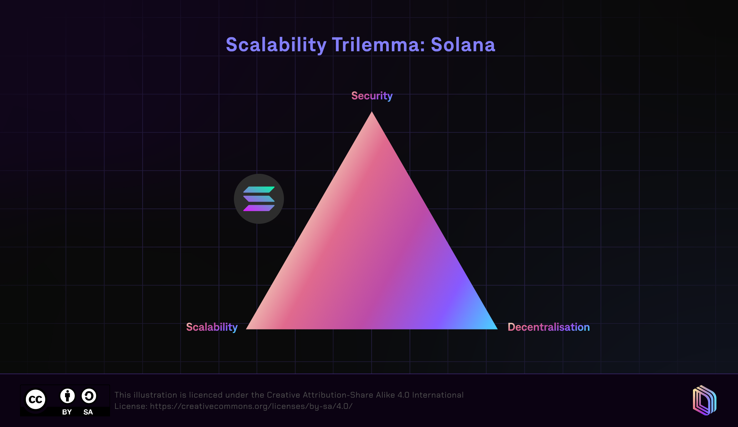 With respect to the scalability trilemma, Solana prioritises security and scalability over decentralisation.