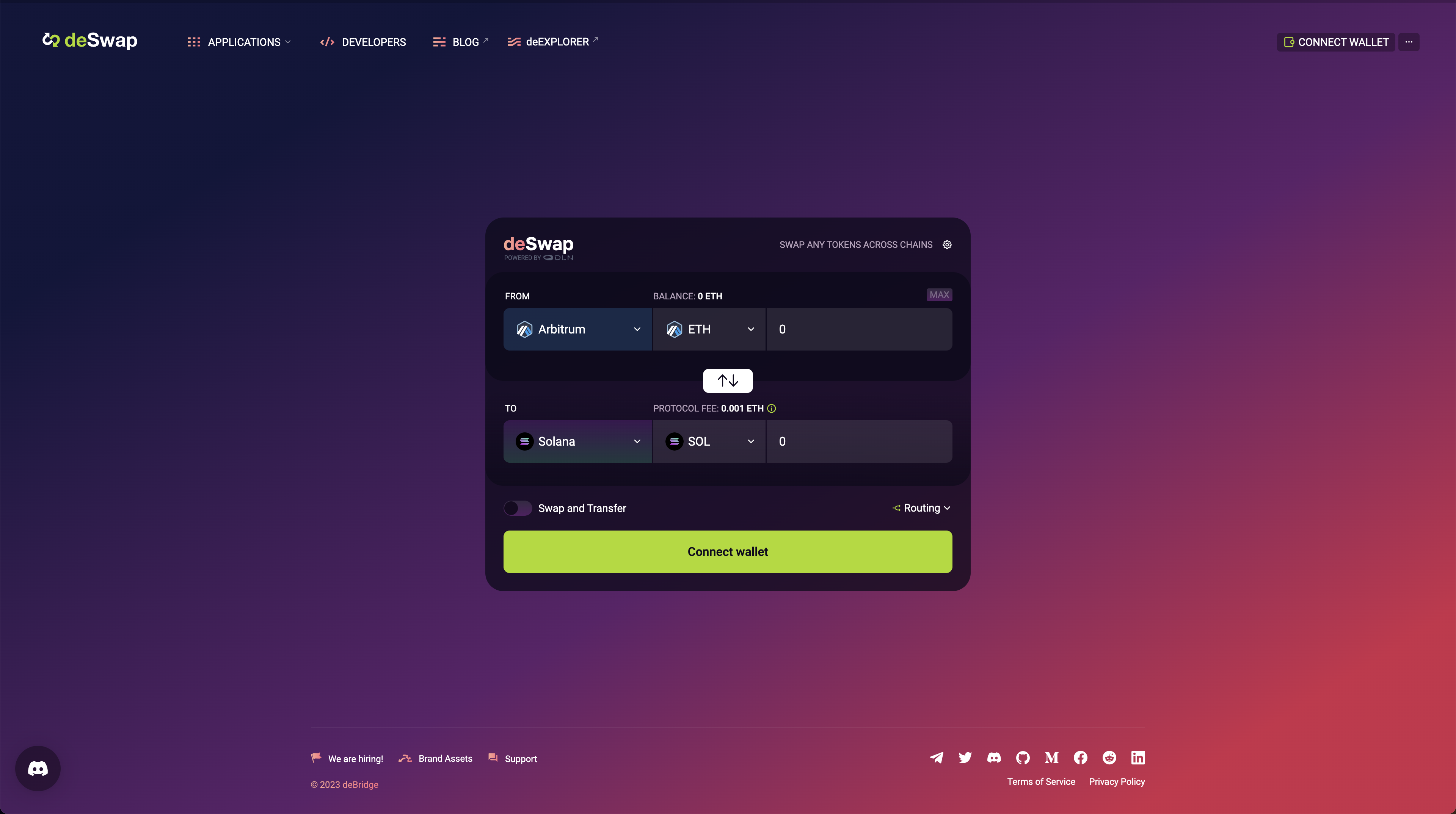You'll be able to select the assets you want to swap, the source chain and the destination chain.